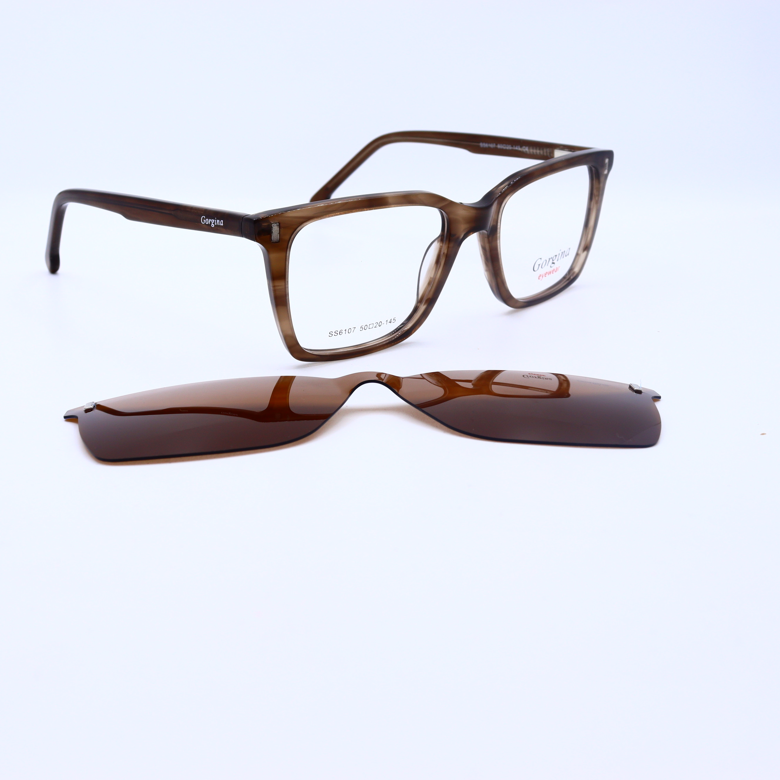 GORGINA sunglasses combine durability and beauty with their sophisticated and practical design. The frame is made of light and durable acetate, making it suitable for long-term wear without causing any pressure. The smart clip system allows the glasses to be easily converted into sunglasses, with black lenses specially designed to protect the eyes from harmful UV rays. The arms are designed in an adjustable way, to ensure a comfortable fit on the nose and ears. The glasses come with a set of practical accessories, including a cleaning spray, an anti-fog wipe, and a case dedicated to storing the glasses and protecting them from scratches.